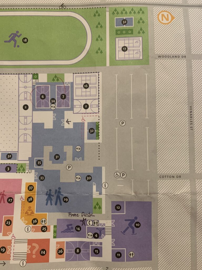 19時にフロントデスクで参加枠を確保し、支払いを終えたら、⑥のアリーナへ移動し、インストラクターにチケットを渡します。